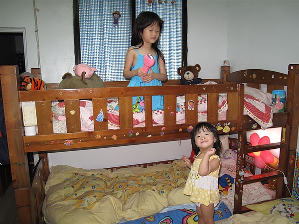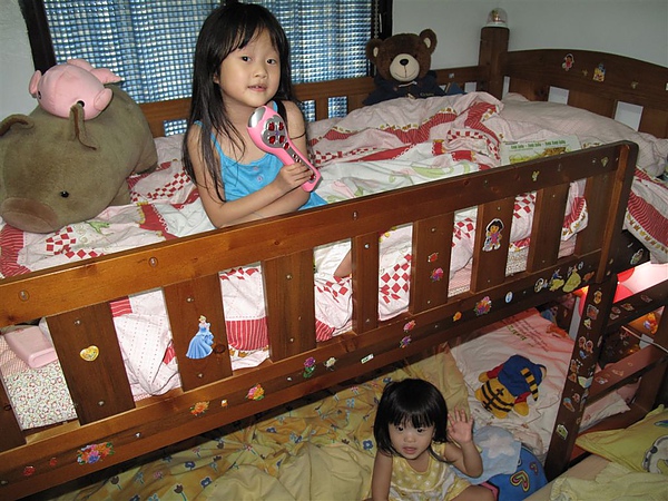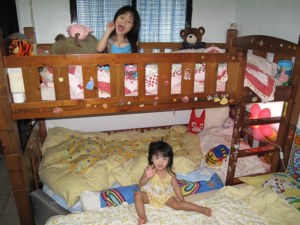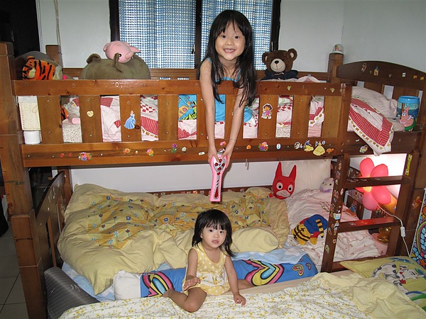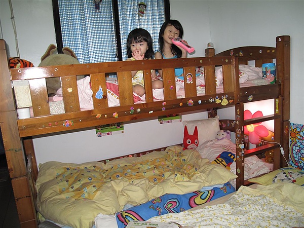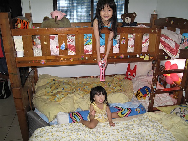 終於現在達成muya睡上舖,小mica睡下舖的目標囉~~~