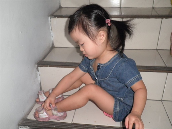 或真的快來不及時替她穿一腳 (另一腳她還是堅持要自己穿