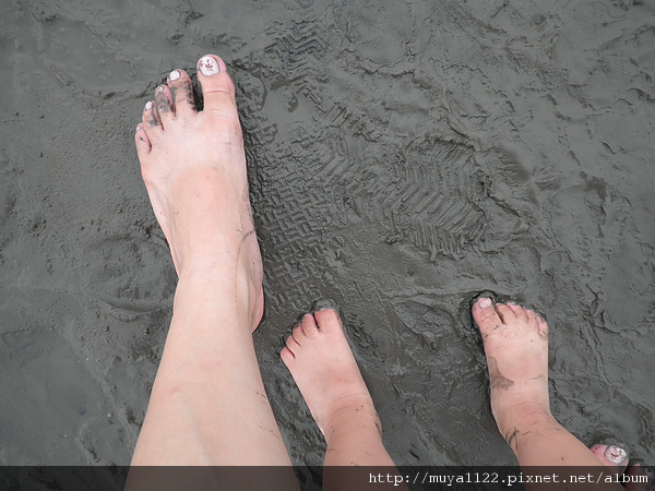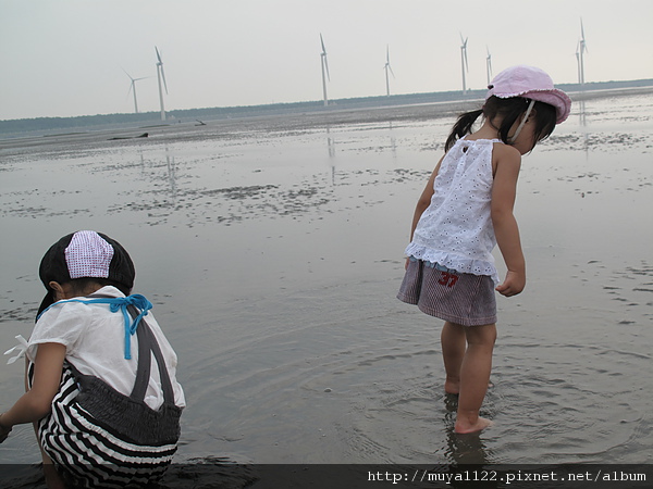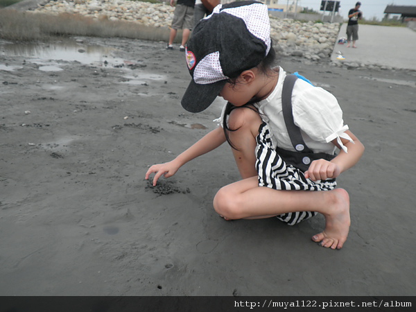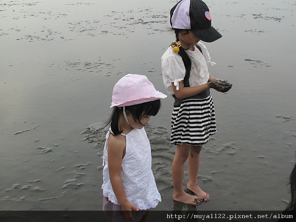 而我們家兩個寶貝不抓螃蟹,只玩水、玩泥巴和踢沙
