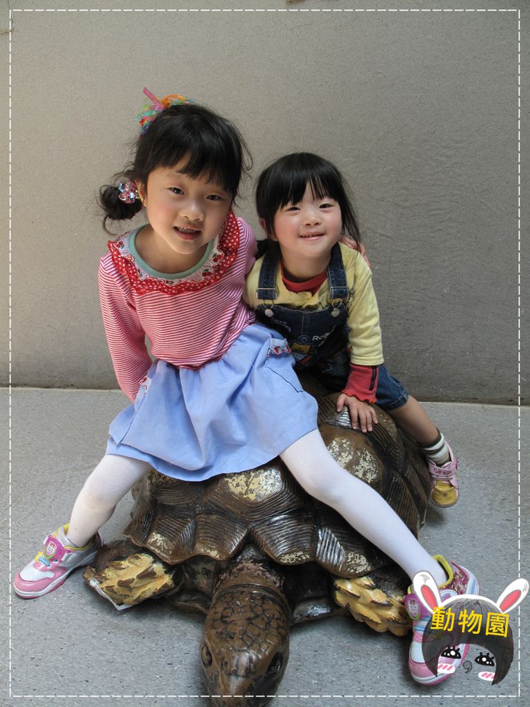 muya與小mica一看到一旁的鳥龜大模型馬上自動的坐上去玩了起來~~