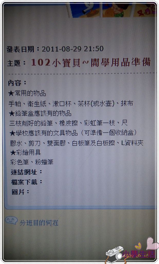 原來在開學的前一天老師己把開學時要準備的用品po上去了