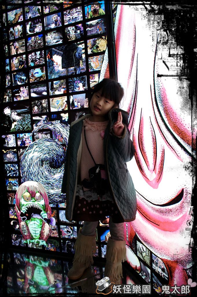 出口前有一大面鬼太郎圖樣的牆,我們當然不會放過任何可以拍照的機會啦~~