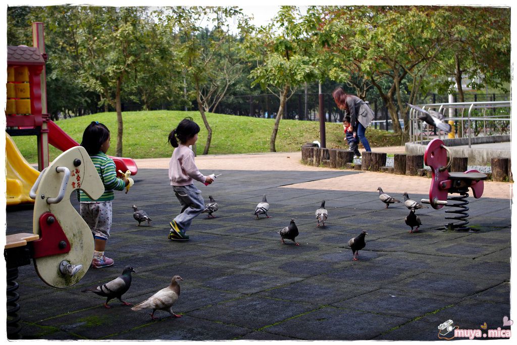 兩姐妹就開始了一場和鴿子的追逐戰,開心的咧~~
